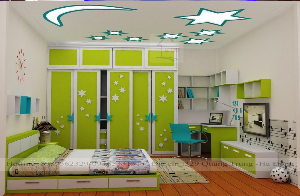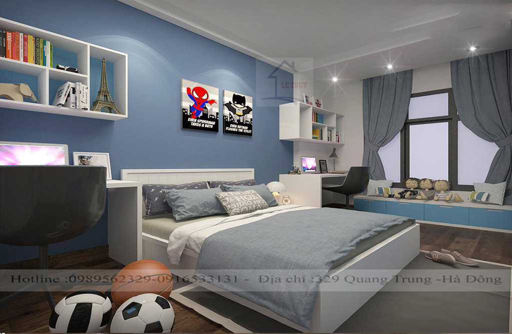 Bên cạnh việc phối màu sơn sáng tạo, việc bố trí nội thất gọn gàng, khoa học, sẽ tạo cho các bé trai nhà bạn tính tự lập và ngăn nắp hơn. Từ đó, bé sẽ chủ động hơn trong việc dọn dẹp vệ sinh, sắp xếp căn phòng ngủ của mình luôn tươm tất theo thói quen sinh hoạt.