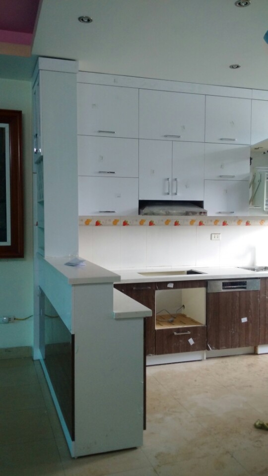 CÔNG TRÌNH TỦ BẾP+ QUẦY BAR CHẤT LIỆU NHỰA PICOMAT PHỦ ACRYLIC NHÀ A NINH SÓC SƠN