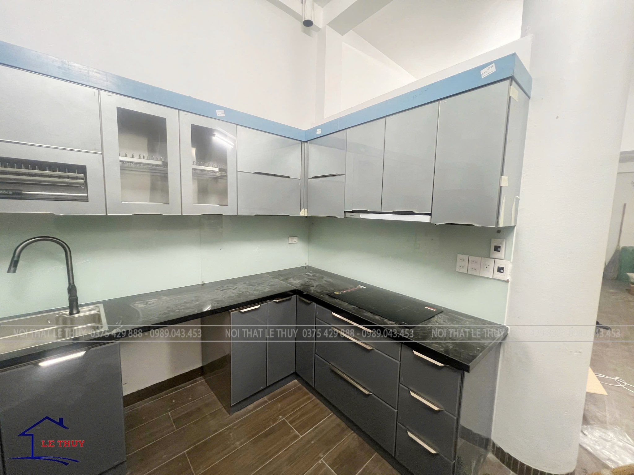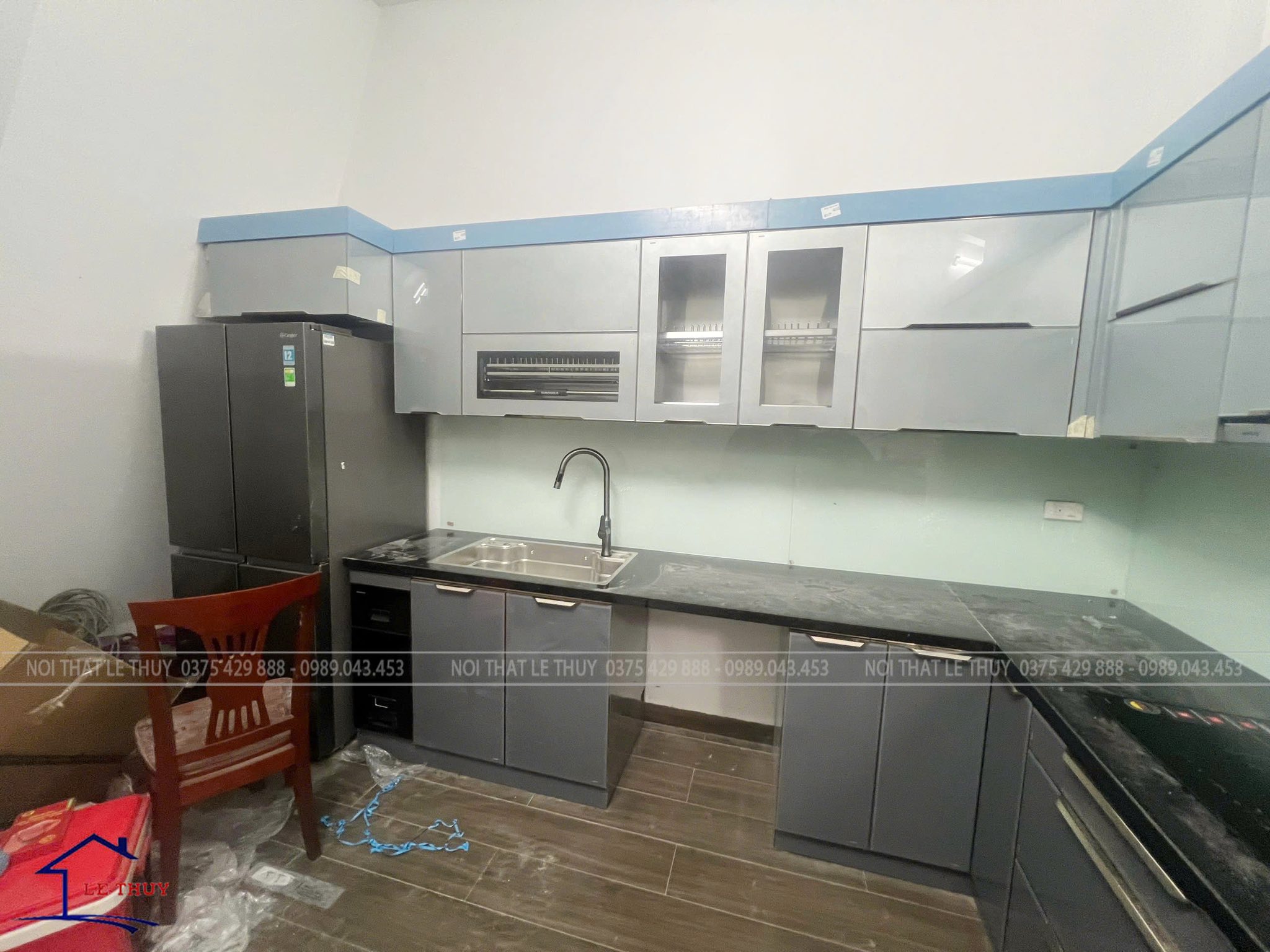 nghiệm thu hoàn thiện tủ bếp inox cánh kính nhà chị hương-phú lương-hà đông