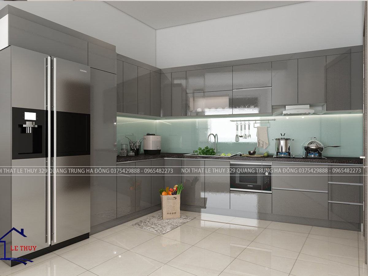 Tủ bếp được thiết kế với kiểu dáng chữ L