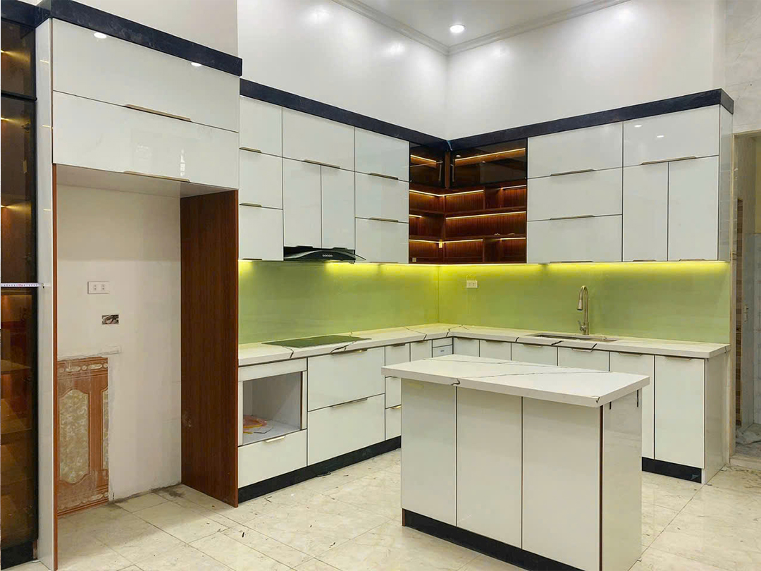 - tủ bếp được thiết kế với kích thước tiêu chuẩn cho tủ bếp trên là 350×700 và tủ bếp dưới là 560×810, mẫu tủ kịch trần phụ thuộc theo chiều cao mỗi nhà