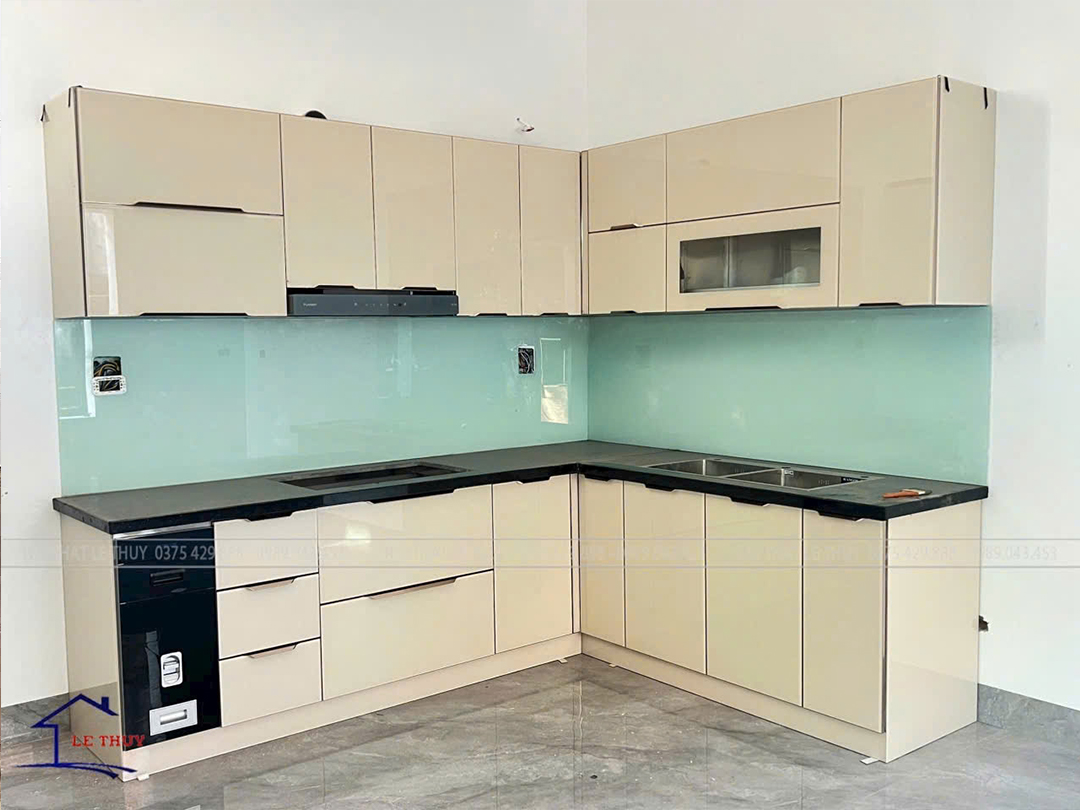 • tủ bếp được thiết kế với kích thước tiêu chuẩn cho tủ bếp trên là 350×700 và tủ bếp dưới là 560×810, mẫu tủ kịch trần phụ thuộc theo chiều cao mỗi nhà