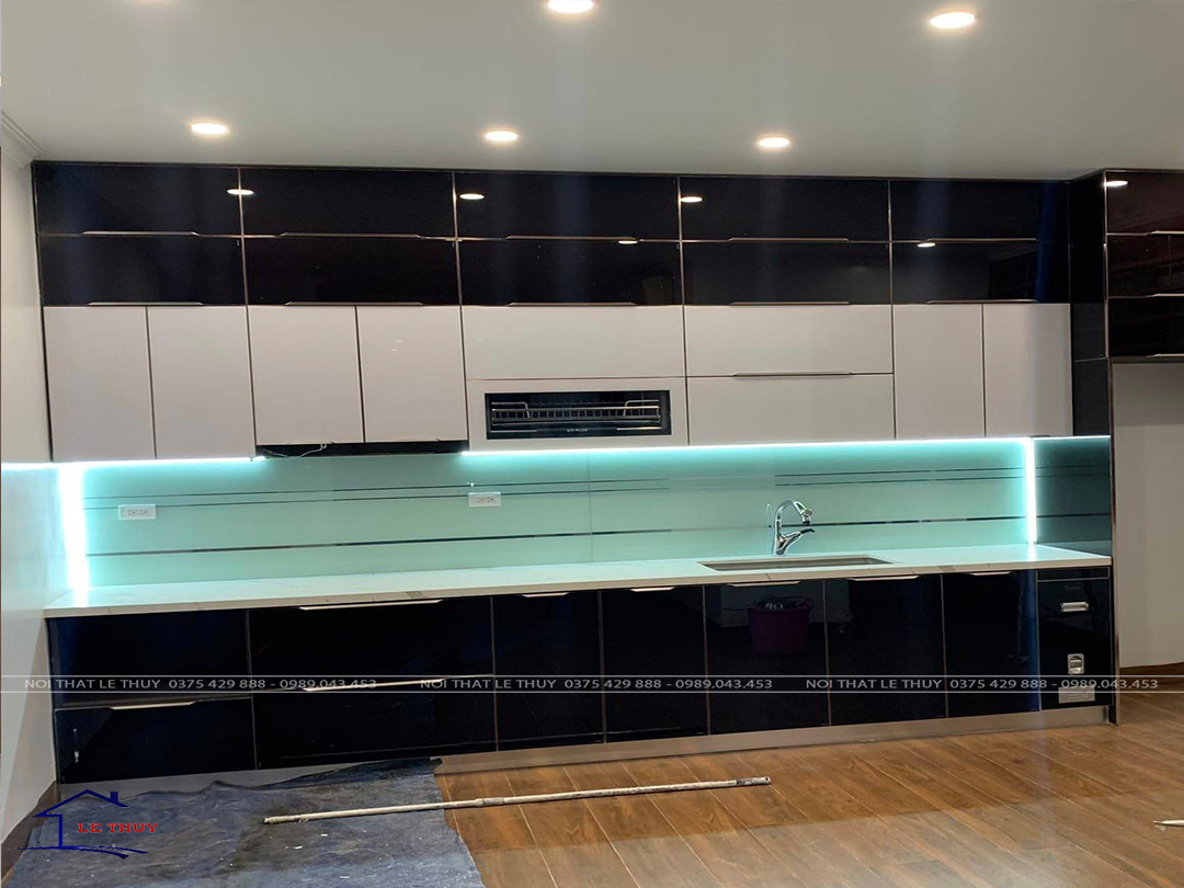 - tủ bếp được thiết kế với kích thước tiêu chuẩn cho tủ bếp trên là 350×700 và tủ bếp dưới là 550×810, mẫu tủ kịch trần phụ thuộc theo chiều cao mỗi nhà