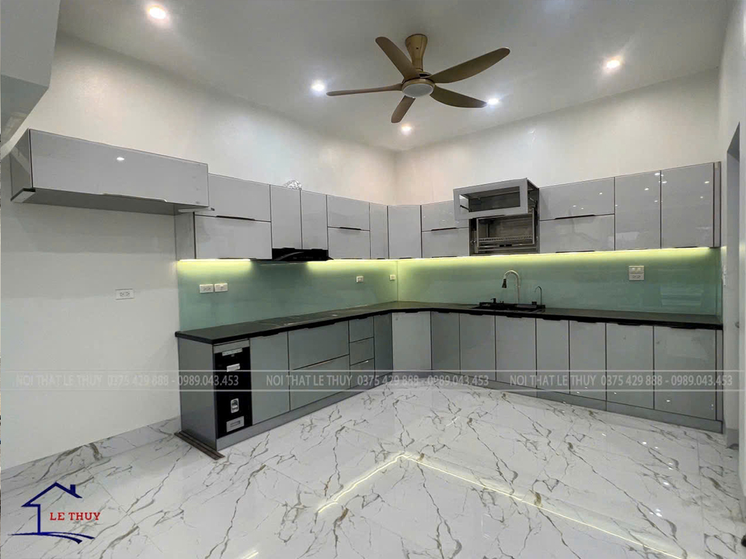 - tủ bếp được thiết kế với kích thước tiêu chuẩn cho tủ bếp trên là 350×700 và tủ bếp dưới là 560×810, mẫu tủ kịch trần phụ thuộc theo chiều cao mỗi nhà