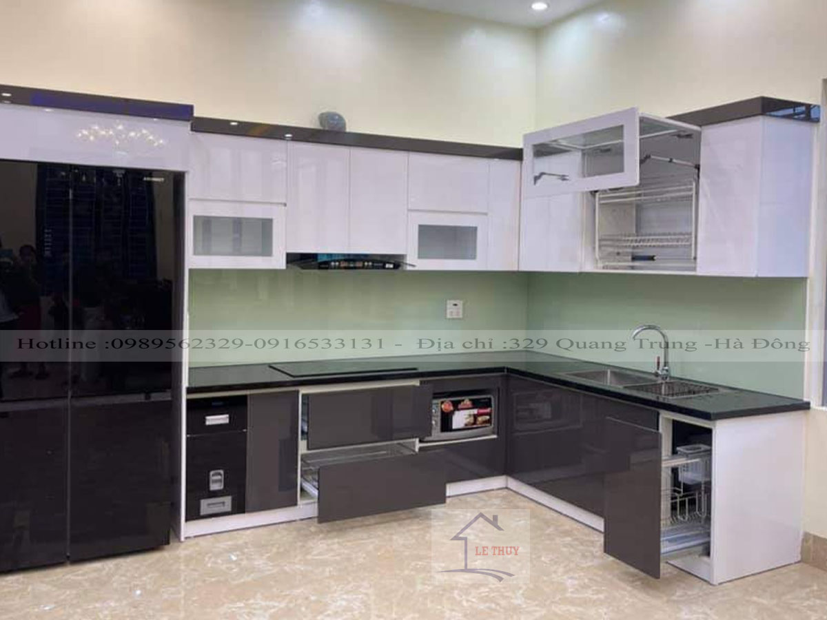 - Tủ bếp Acrylic thiết kế phù hợp với căn hộ có diện tích bếp rộng.